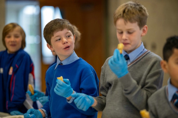 Boys from Wellesley College are making spring rolls, a traditional Chinese food, at a workshop. The China Cultural Center in Wellington invited local Chinese chefs to teach the students to make the snacks in Wellington, New Zealand.