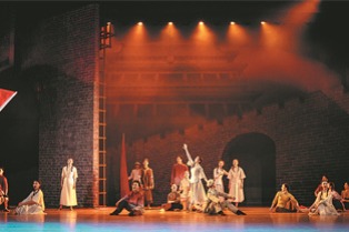 The theater lights had yet to dim when a male dancer wearing traditional Chinese clothes from the Qing Dynasty (1644-1911) appeared among the audience, bowing respectfully and immersing them in the era.