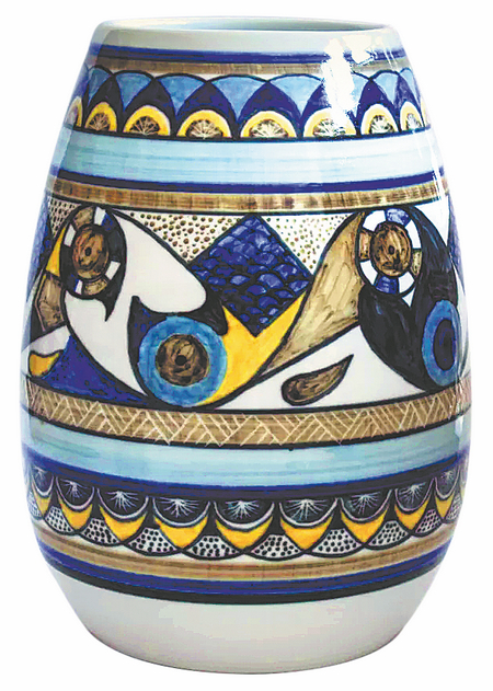With its balanced, rounded pot and cups, the tea set seems like Chinese ceramic at first glance. But closer inspection of its motif reveals an ancient Ugandan design that is traditionally applied to tribal masks for important seasonal rituals.