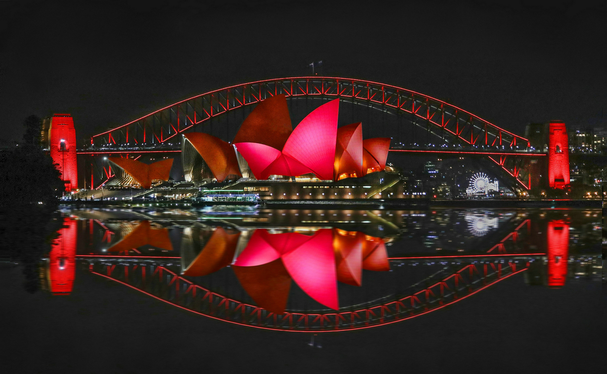 《澳大利亚悉尼歌剧院点亮中国红》