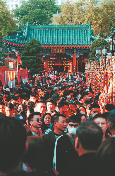 Crowds of visitors at Wong Tai Sin temple during the recent Spring Festival. [Photo by MICHAEL RHYS CARD/CHINA DAILY]
