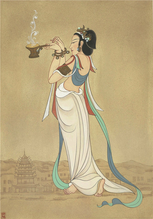 A decade ago, Chang Shana, an esteemed scholar of Dunhuang art, started a touring exhibition called Everlasting Beauty of Dunhuang, which shows her drawings of the murals and statues inside the Dunhuang caves in Gansu province and designs in which she incorporates motifs from Dunhuang. Chang, who's 93 years old, is also a former head of the Academy of Arts and Design of Tsinghua University. She spent her early teenage years in Dunhuang with her father, Chang Shuhong, the first director of the Dunhuang Academy. She was fascinated by the cave art and made copies of it.