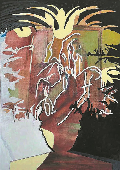 Her current exhibition in Beijing, The Symbolism of Bouquets, shares her explorations of adding philosophical and humanitarian dimensions to the depictions of flowers. Her method is similar to that of a collage painting, in which she puts together the images of floral bouquets, scenes of great artworks in history and even elements of Chinese landscape paintings, inspired by her trips to the country in recent years. By doing so, she has created semi-real, semi-surreal scenes to present curiosity, uncertainty, fear and benevolence.
