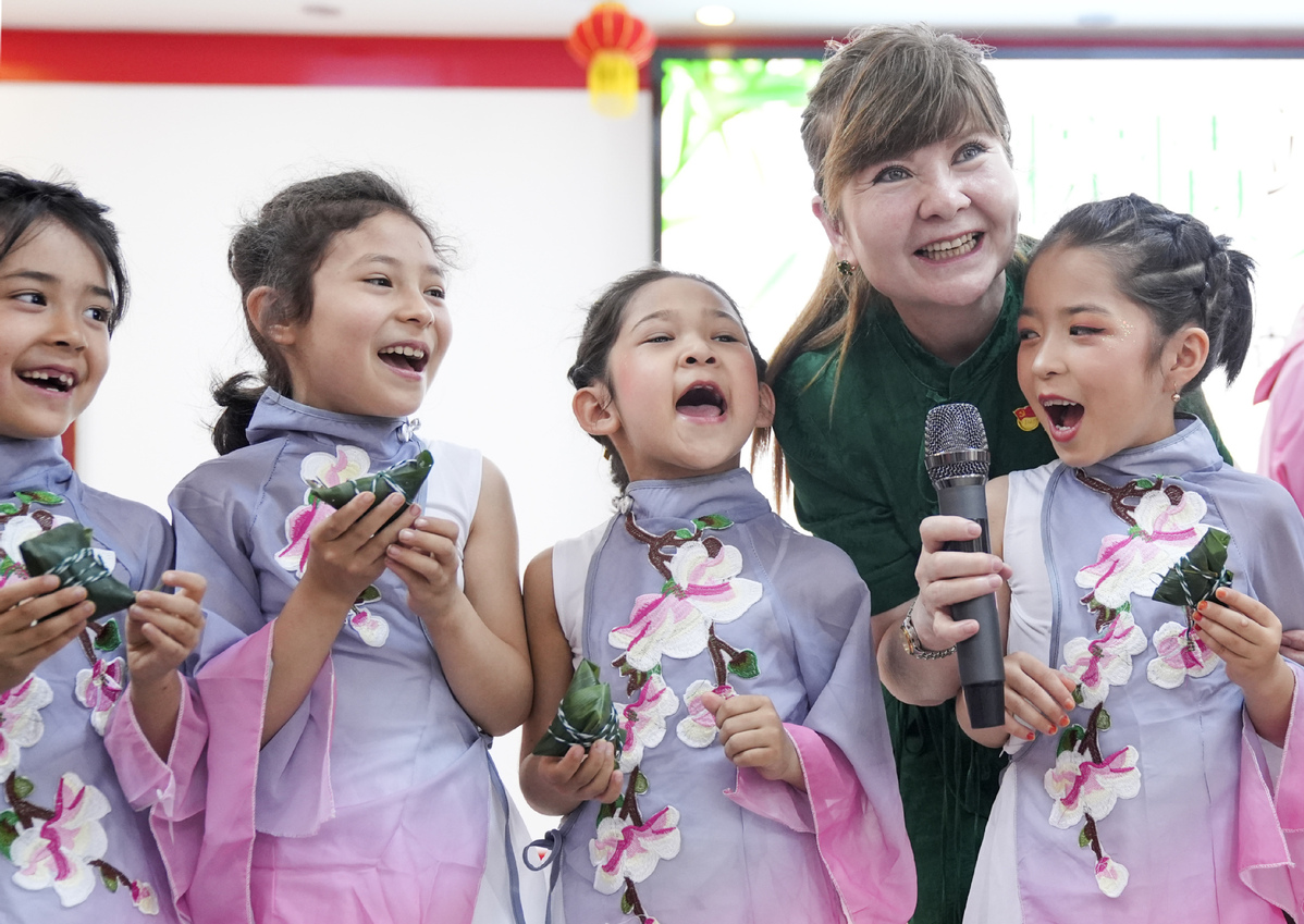 Children learn about the Dragon Boat Festival in Urumqi, Xinjiang Uygur autonomous region, on July 6, 2024. [Photo/Xinhua]