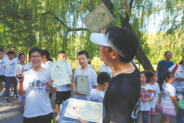 To mark the occasion of leaving primary school, they are presented with certificates on June 15. [Photo by ZHOU MIN/FOR CHINA DAILY]