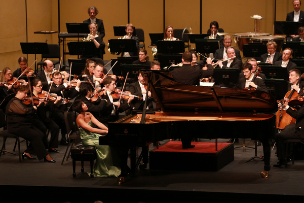 The Berliner Philharmoniker presented its first concert, featuring pianist Yuja Wang, at the Shanghai Grand Theatre on Wednesday. CHINA DAILY